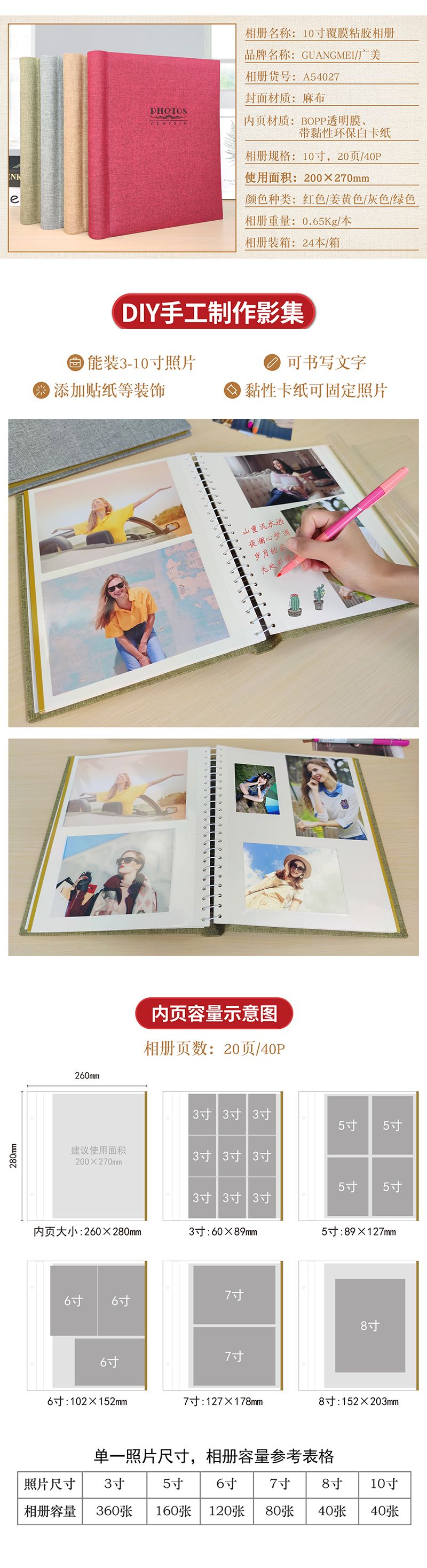 线圈装麻布封面10寸覆膜粘贴相册40张